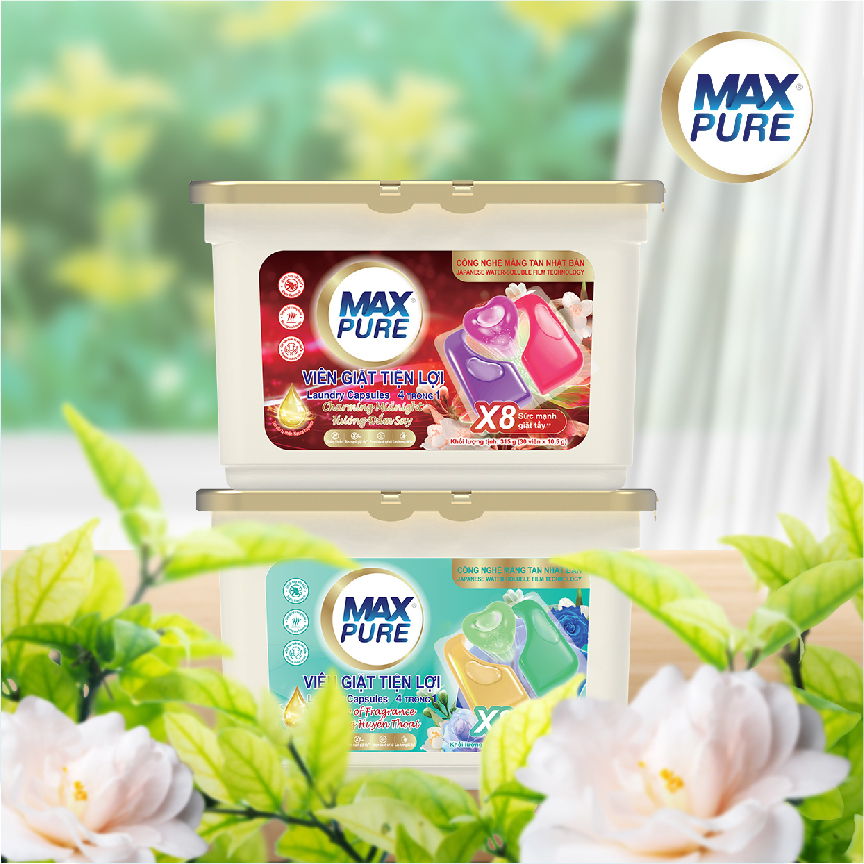 [Mẫu mới] Hộp 30 Viên Giặt Tiện Lợi Maxpure 4in1- Hương Đắm Say
